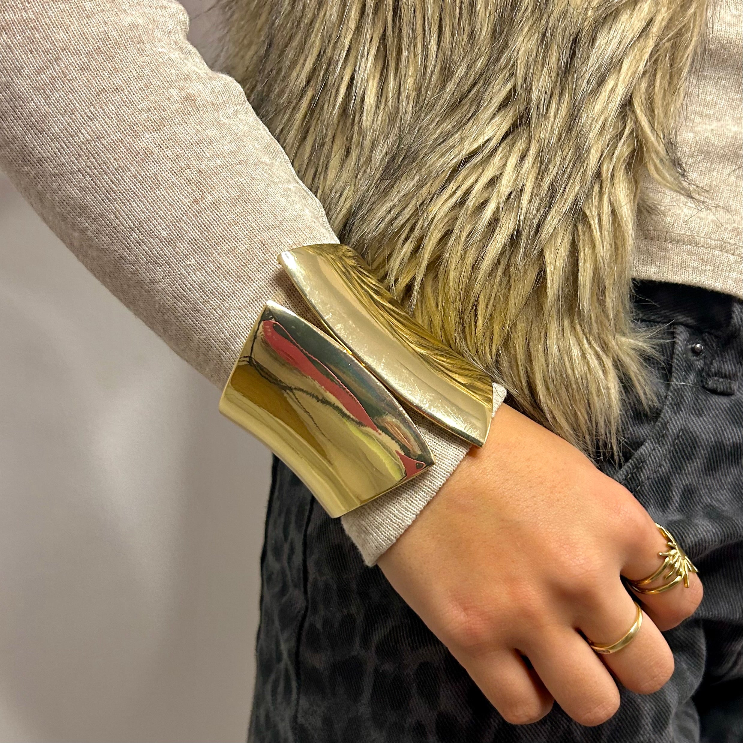 • Descripción: El Brazalete Kaela destaca por su diseño ancho y dorado espejo, una pieza moderna y elegante que aporta fuerza y sofisticación a cualquier look. Ideal para mujeres que buscan un accesorio con presencia.✨