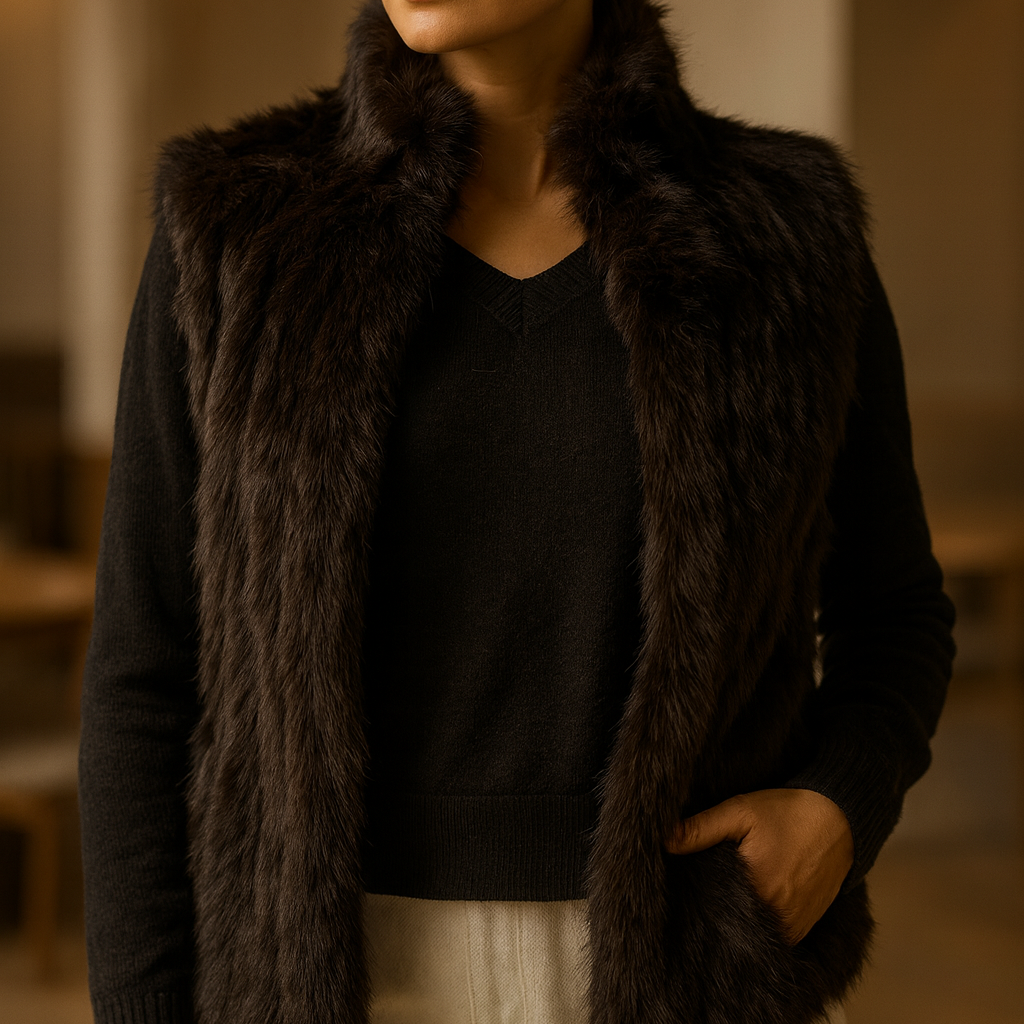 • Descripción: El chaleco NORDEN envuelve con una suavidad irresistible y una elegancia natural. Su diseño sin botones y textura de pelo aterciopelado crean una silueta limpia, moderna y muy favorecedora. Disponible en color vino, negro y marrón, es la prenda perfecta para dar calidez y estilo a los días fríos sin renunciar a la sofisticación. Un básico de invierno con alma de lujo, fiel al espíritu de Alma de Plata.✨