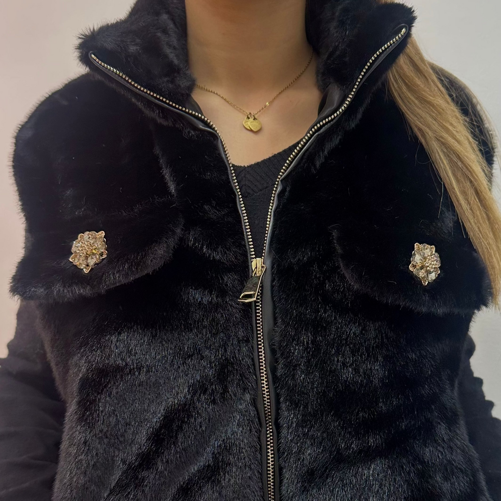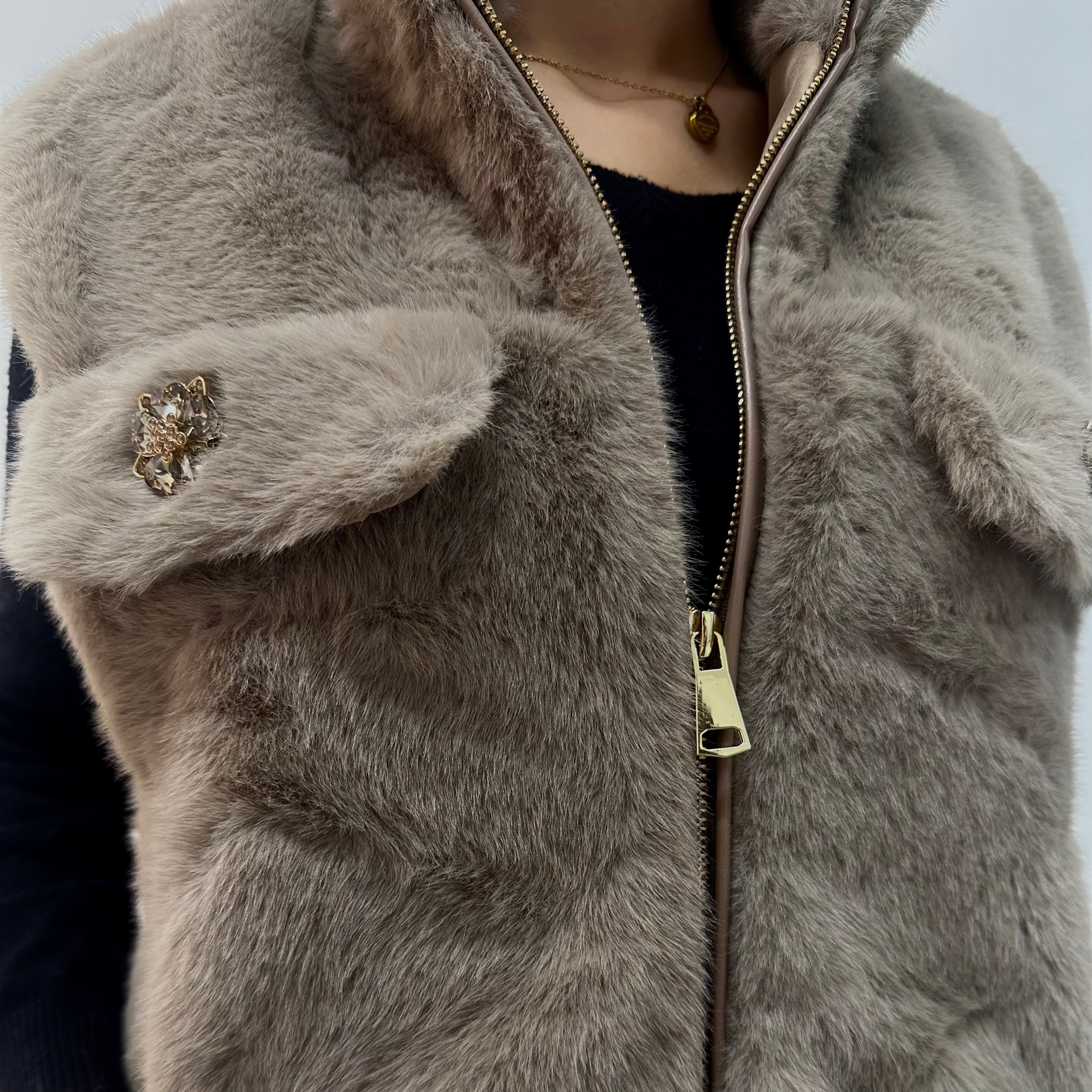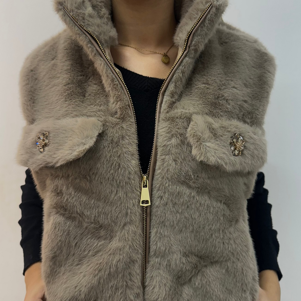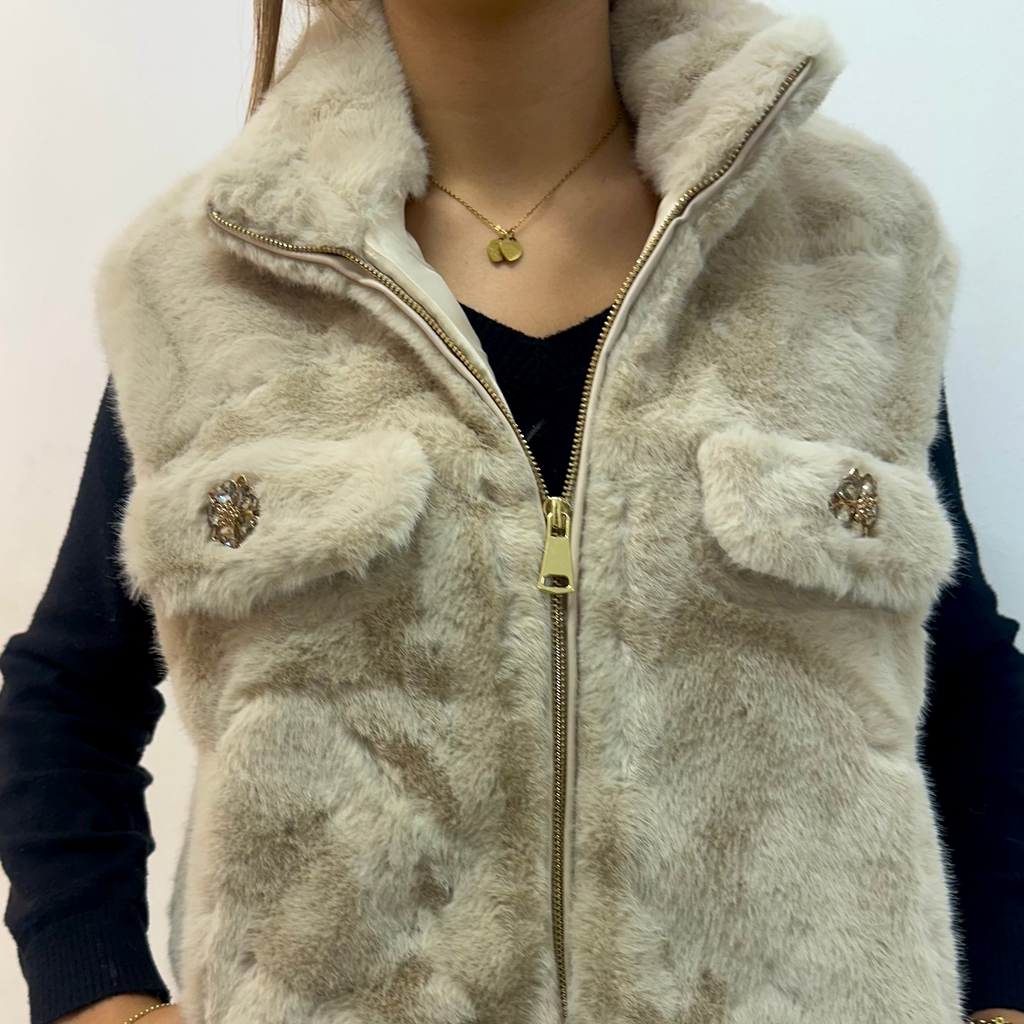 • Descripción: El chaleco SIBERIA combina elegancia y calidez en una sola prenda. Su textura ultrasuave y el acabado de efecto pelo aportan un toque de lujo a cualquier look. Disponible en negro, marrón y beige, se convierte en ese imprescindible de entretiempo que eleva cualquier outfit, desde unos jeans hasta un vestido. Cierre dorado y botones joya que reflejan la esencia sofisticada de Alma de Plata.✨