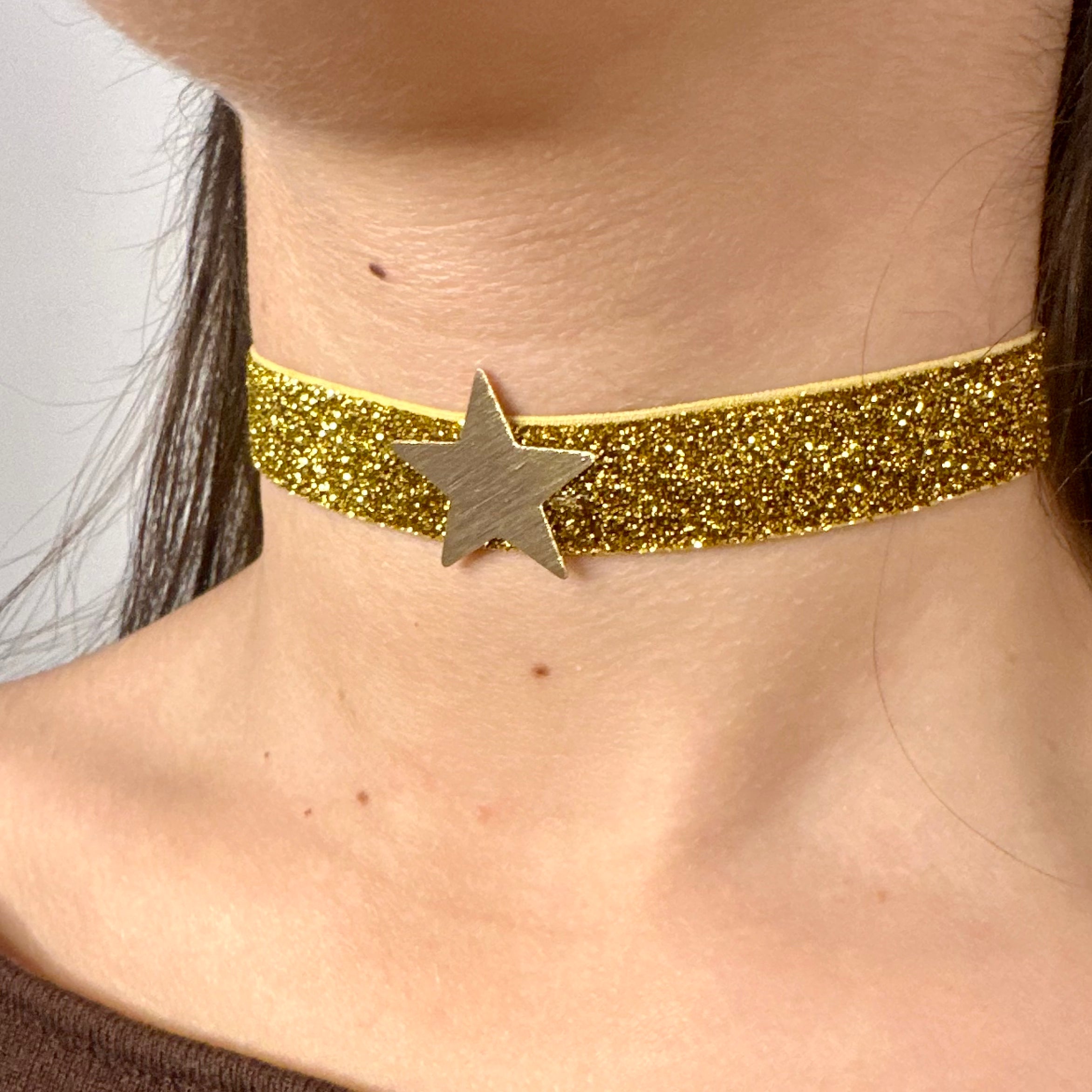 • Descripción:  Solin captura la luz suave de una estrella mínima, creada para brillar con elegancia en tu día a día. Un chocker delicado y dorado que aporta ese toque de magia discreta que transforma cualquier look.