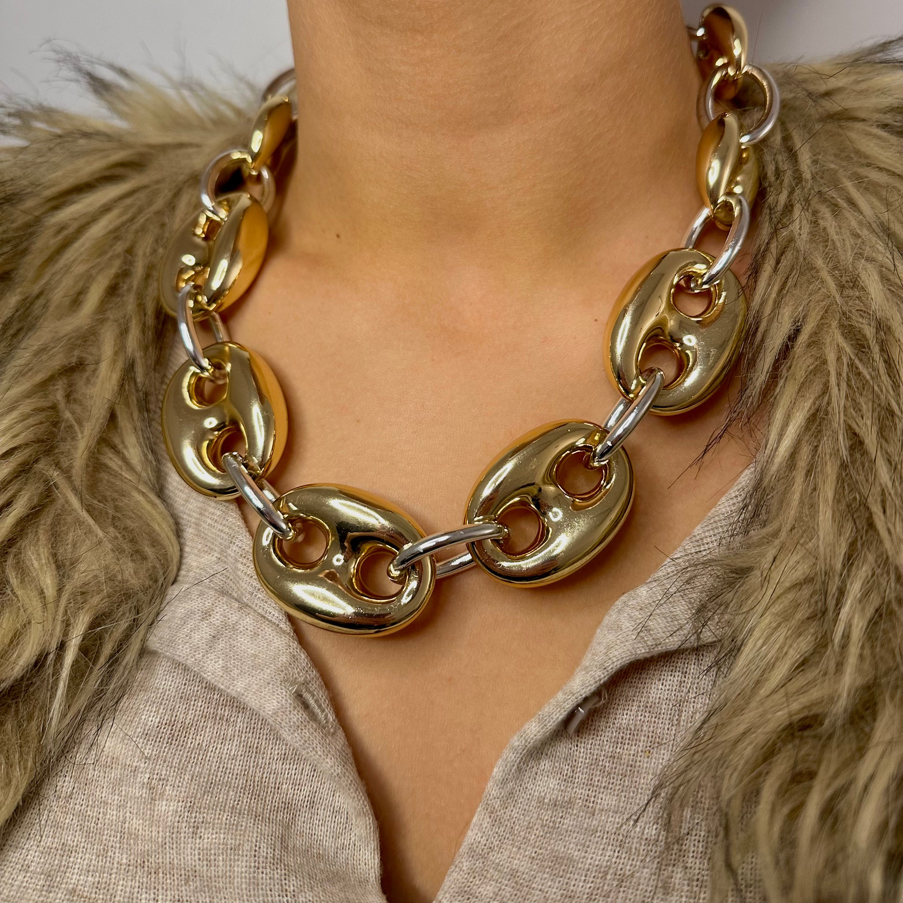- Descripción: El Collar Bolda es una pieza de impacto con eslabones XL dorados de acabado pulido que aportan fuerza, estilo y mucha presencia. Su diseño moderno y sofisticado transforma cualquier look al instante, convirtiéndose en el protagonista absoluto.✨