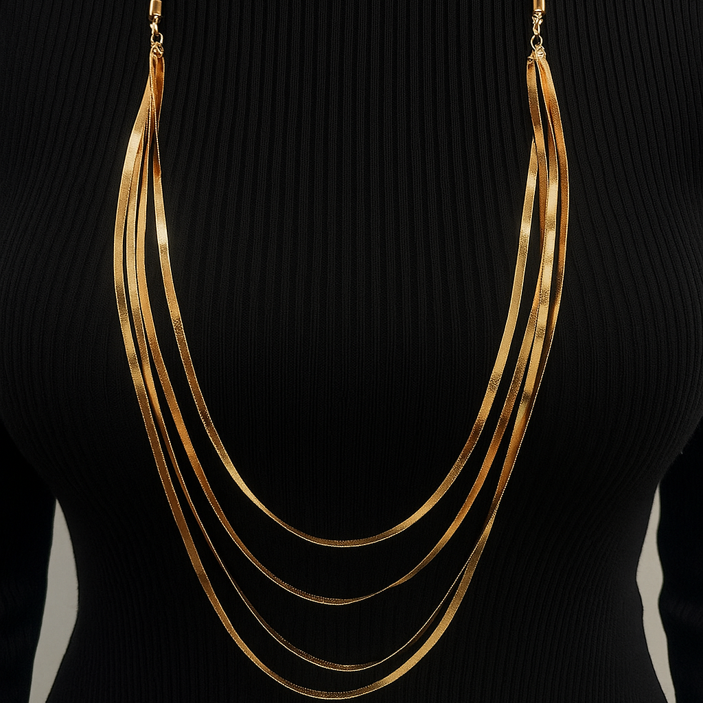 - Descripción: El collar Eclat irradia distinción con sus delicadas hebras doradas que capturan la luz con cada movimiento. Su diseño liviano y moderno, combinado con un elegante cordón oscuro, crea un contraste sofisticado. Ideal para mujeres que buscan un toque de brillo sutil y refinado en su estilo cotidiano.✨