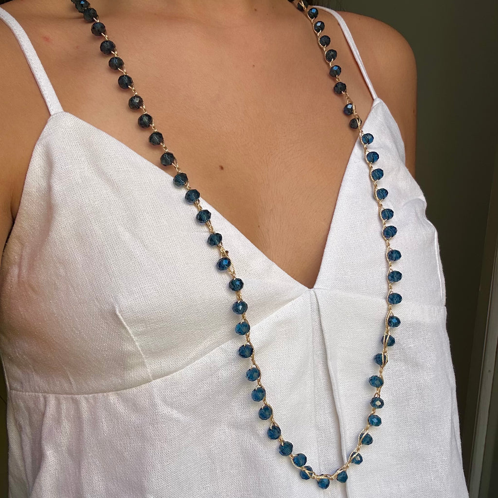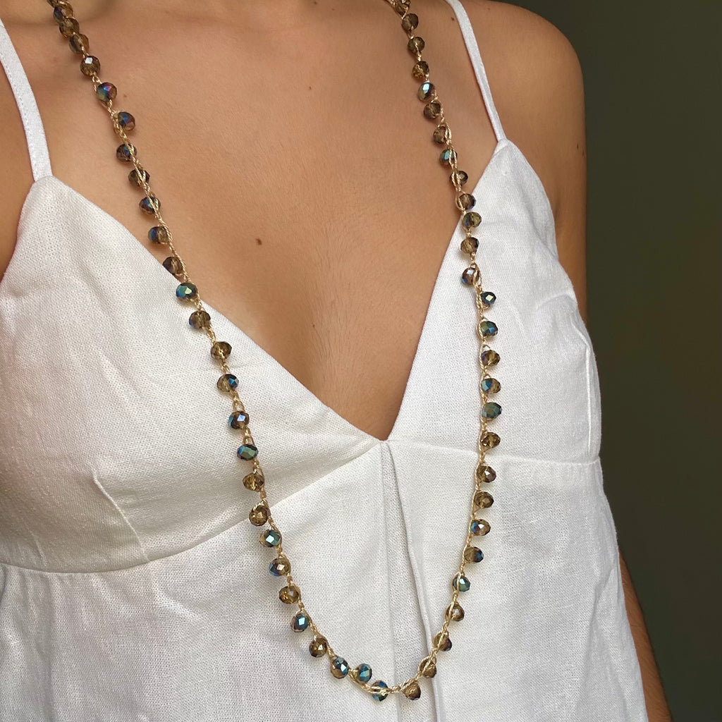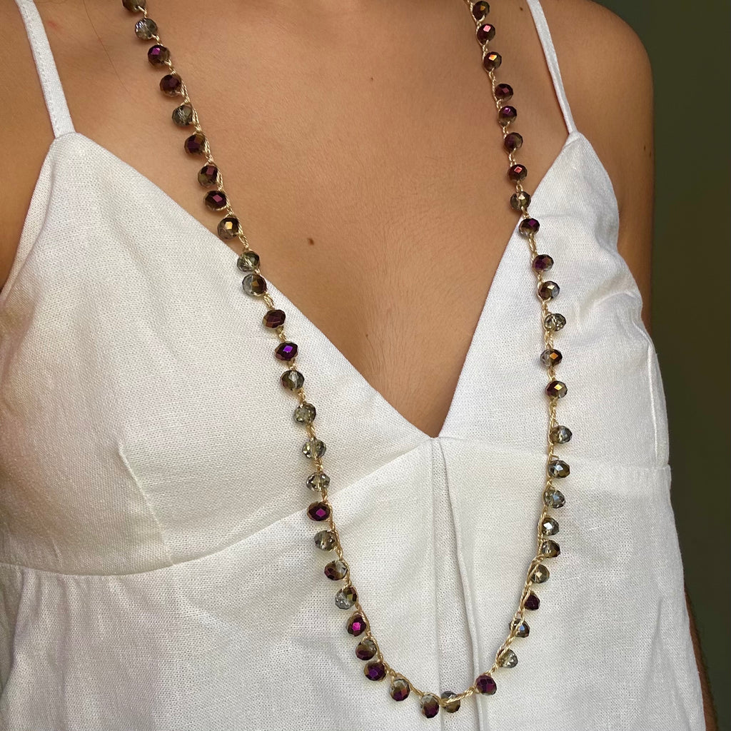 Un collar que combina sutileza y sofisticación en cada detalle. Su diseño estilizado aporta brillo y movimiento, elevando cualquier look con elegancia natural.
