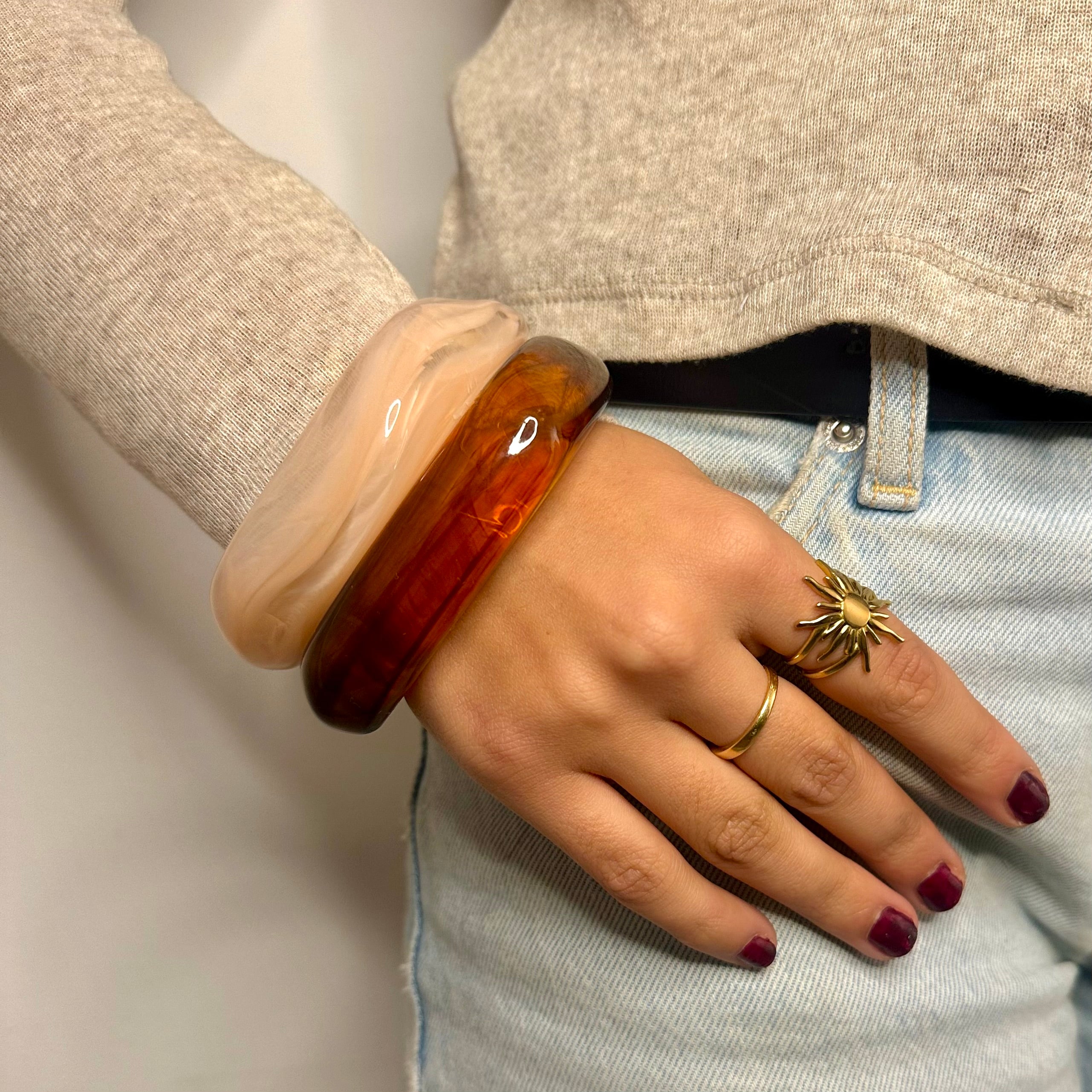 • Descripción: Nuestras pulseras de resina aportan color, ligereza y estilo a cualquier look, convirtiéndose en el complemento perfecto para el día a día. Su diseño moderno y su acabado pulido las hacen ideales para combinar y crear looks llenos de personalidad.