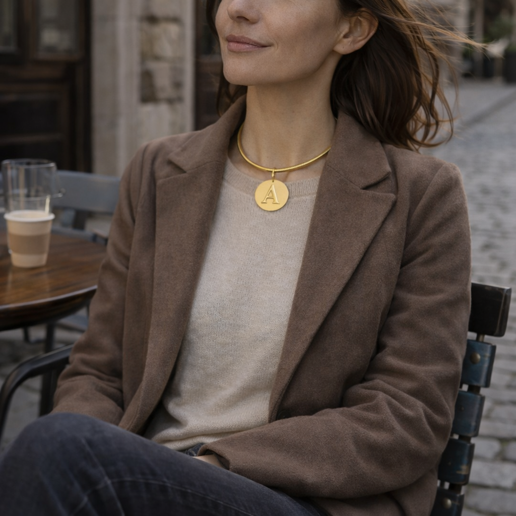 El choker con letra es uno de los formatos más buscados dentro de la joyería personalizada, especialmente para looks modernos y estilismos en capas. Una joya discreta pero con identidad, pensada para acompañarte todos los días.✨